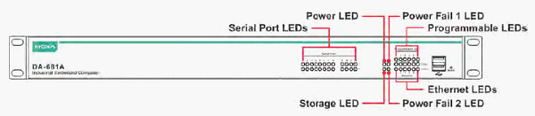 Внешний вид компьютера MOXA DA-681A-I-DPP-T, расположение и назначение индикаторов